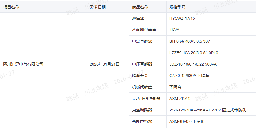 1月21日采購(gòu)信息